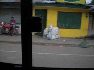 | 夜が明けてきて、みんなやっと回収終わって (最終回収は7時00分くらいだった) いよいよ移動。 今日は普通に考えたらフィリピンの平日。 みんな働いてる。↓通勤中の皆さん。 そんなのをしり目に遊びに行きます(^^; 露天販売がたくさんありました。 おりの中で売っています。 セキュリティー面の問題らしいが 結構見た目怖い(^^; |