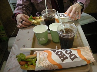 | そして朝ごはんです。 お隣のおばちゃんの会話が、、、 「あんた、後20分で飛行機とぶで」 「大丈夫やて、電車も駆け込みできるやろ」 ・・・・いい根性してますw |