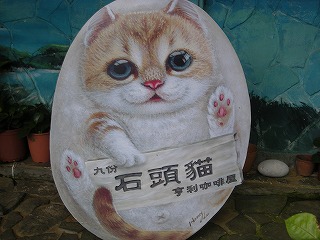↑今回の旅の一番のお気に入りショットです。 まじめに絵葉書みたいでしょう? ←下り坂を下りたら、喫茶店が、、、、「石頭猫」 ってどんな意味なんだ?!w かなりの山の上なので、景色はきれいでした。 曇ってたのが残念だけど、快晴だと 日焼けしそうですw |