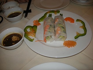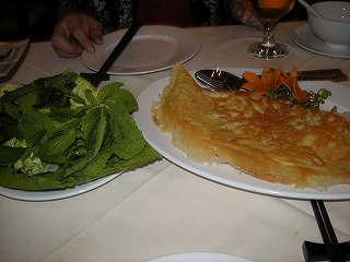 日本で前もって調べていたホテル近くの ベトナム料理店へ。 前でジャズバンドが生演奏してくれて いたりして、しゃれた店です。 ここでの目当ては、生春巻きと、 ベトナム風お好み焼き! |
