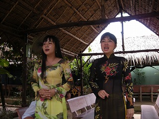 | →食べてたら、なんか村のおねぇさん たちが順番に各テーブルにまわって、 歌を歌ってくれた。片言ながらも日本語。 たぶん、日本語で話していたから気を 聞かせてくれたのかもしれない。 でもね、面白かったのが、最後に蛍の光を 歌われました。そうか。。。。。もう帰るか。 といった感じでしたw 一応チップを渡してなんだったんだ? でした。 |