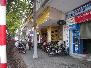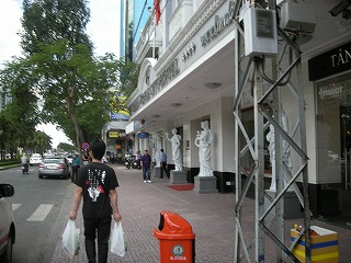 で、一回荷物をおきにホテルに帰ろう!って事になって、プらプら街中散策かねて、 ホテルに帰宅。 あ、上のいちばん左端の写真は、相棒が荷物もって帰ってるところね。 町のいたるところに両替所があって、あわてて日本でさほど交換しなくても大丈夫でした。 私たちは日本から3万円分だけ交換して持っていってて、今日の買出しのために追加で5000円 ほど両替。かなり安いほうでしょうね(^^; 左はお世話になったサイゴンホテル。中はまぁ普通です。これ以上ランクが下がると、 滞在は厳しいかな〜って感じです。 |