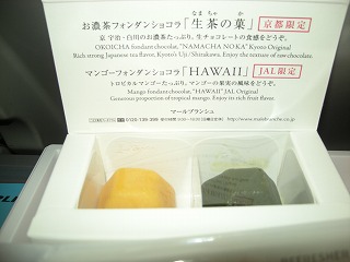 | さらに機内食の続きですが、ただいた上の右の写真。これ生チョコなんだけど、マンゴー味と抹茶味。 相棒が食べてたのを少しだけもらったのですが(1つ食べきれるほどはおなかに入らない。。。)めちゃうま!これは残してはもったいない! ってことで、おやつはいただいてハワイで食べることにしました。いや〜〜〜〜、さすがとしか言いようがないJALですが、これはいいわ。 さらに、水とパンが入った巾着をくれて、自分のタイミングで食べろよ。と。朝ごはんの代わりなんだろうね。なんか本当によいわ。 さすが日本航空。日本のおもてなしって本当にすごいわ。国際線に乗ることもあるので、いろんな会社の飛行機乗るけど、JALが一番です。 で、機内ですが、結構快適。エコノミーだから狭いのは狭いのですが、そこまで狭くはない。 後は日本で事前に準備していた空気枕や、アイマスクで結構快適に睡眠。。。。といいたいところでしたが、 相棒に夜中にたたき起こされる羽目になり、その後眠れず。ほぼ徹夜の状態になりました。 本当にあいつだけは、何とかならんかと毎回思います。でもチョコおいしいからいいや?! あ、後ね!今回初めてだったんだけど、スーツケースがX線検査に引っかかってね!飛行機に乗った後に一回降りてスーツケース あけられて検査された!初体験。容疑は【ライターがたぶん入っている】だったんだけど、結局見つからず。何も無く飛行機に乗れました(^−^) |