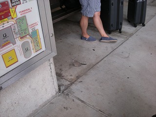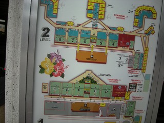 | ってことでほぼ徹夜のしゃむねこと、快眠をむさぼった相棒。ホノルル空港到着です!こんちくしょ〜w 入国審査を経て(この辺は写真撮影禁止)荷物を受け取ります。うちのかばんは紫にピンクのベルトとオレンジにレインボーのベルトという とても目立つものなので、結構出てきたらすぐにわかります。特に今回購入のオレンジはポイントに水色の補強版も入っていて、めちゃ目立つ。 やっぱりスーツケースは目立つのに限ります。 この後ホテルに移動することになるのですが、個人旅行のためお迎えなんかありません。なので空港を出て、まずは地図を探し、 バスを探します。日本である程度調べていたスピーディーバスというのがあることがわかり、のり口に移動。往復の料金をどうやら支払うらしく、 帰りの日程や、時間を聞いてきてきたり、名前を聞いてきたりと結構大変だ(^^;英語がんばれです。 無事に2人分の往復チケットを購入して、今回お世話になる、ホテルヒルトンハワイアンビレッジに移動します。 |