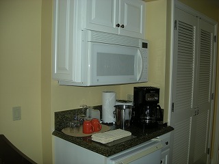 | 無事にホテルに帰ってきてまずは部屋に荷物を 入れることにしました。 建物自体は綺麗なのに、エレベーターが なんとなく古風ですw で、今回は完全なホテルではなくタイムシェア なので、一部簡単なキッチン道具も ついてます。 あまり、これだと調理はできないな。って 感じでした。 |