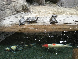 でホテルの中を散策してみる+ついでに 晩御飯を 食べれそうなところを探して みることにしました。 とりあえず、うろうろ。結構敷地広いです。 お買い物もここの敷地内ですみそうです。 てかブランドショップなら免税店に 行かない限り、ここで買えばいいかもしれない。 そしてなぜか、カメやらコイがたくさんいました。 |