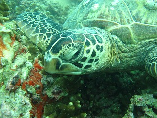 亀。主なのか近づいてもまったく動かないw かなり近くで見ることができました! これだけ近くで見たのは初めてです。 後はいただいたお魚のご飯をあげてたの ですが案の定、手をかまれて 持っていかれましたwこちらは毎回のこと なのでなんとなく判ってましたw 後は海底に座ったりできて面白かったよ 感想もサイトに投稿しておきました! 口コミは私も参考にさせてもらっているから 必ず書くようにしております。 |