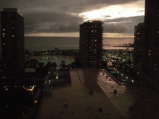 | ご飯の後はホテル内でゆっくりしました。夕方近くから雨やんだので、晩御飯にでも繰り出すか?といった感じです。 ホテルの部屋からの眺めも慣れてきました。ハワイのサンセットといいますが、残念ながらいまいちです。 でもね。思った。クリスマスの装飾ですが、正しいクリスマスの装飾が多い。下の写真なんだけど、キリスト様が生まれて、 マリア様が抱っこしているんだよね。そうなんだよ。クリスマスって、【キリスト様のお誕生日】だったよね!やっと思い出しましたよ!って感じです。 さてさて、ご飯食べに行きますかね。 |
