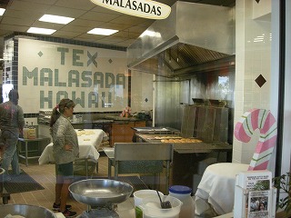 | 綺麗な景色を見ながら、移動していると、早々に1つ目の見学箇所 マラサダ 工場?に到着です。ものはなんというか、ミスタードーナッツの フレンチクルーラーをふっかふかにした感じです。 あげ立てであったかい。これにお水を1本もらえてとてもハッピー(自前で500mlは持ってたけどね)時間が無くて朝ごはん食べれなかったけど 十分に朝御飯の代わりになります(相棒は足りないみたいだけど、、、、)おいしいです(^−^) |