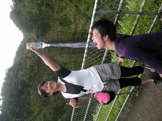 そして滝。 綺麗です。がもっと近くで見たかったかも ここでいきなりガイドさんが私にペットボトルを 持たせて。。。 |