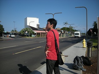 コナ空港到着。思ったよりもかなり早くついたので、コーヒーでもいただきながら ゆっくりとさせていただくことに。 このハワイ島の雰囲気ともお別れです。気に入っていただけに寂しいです。 ←↑の相棒の写真ですが、なんか【アメリカ!】って感じがして結構気に入っております。 そして彼は少し残念でこのカッコのまま日本に帰ります。 今は良くても寒くなると思うんだけどなあ(^^; そしてスーツケースを預けます。コナ空港で預けたら、次は関空まで引き取れないよ?って言う 扱いでしたので、今回は自動チェックインはできませんでした。少し残念。 |