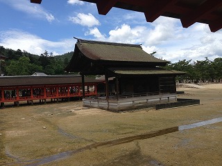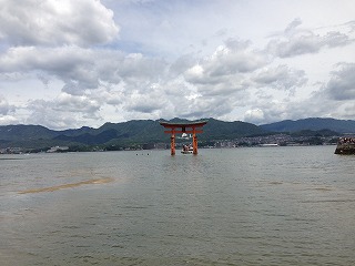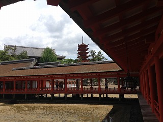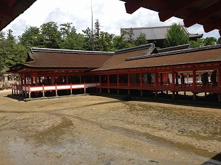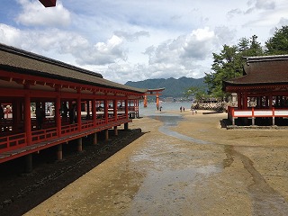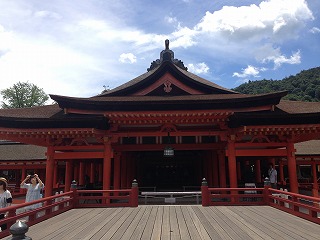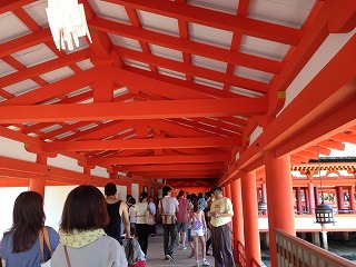 | この辺の写真とか The厳島神社!って感じでけっこう気に入っています。 本当に平安時代からのつくりで綺麗なんだけど、すごい技術だよね。 かなり綺麗なんだけど、すごくいい天気になってね。天気予報でも曇りだったし、朝も曇っていたもんだから、油断しておりました・・・ Tシャツの首元が結構日焼けしてしまいました。 |