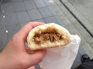 | あなご饅頭なるものを発見。 要するに肉まんの肉がアナゴ。 うん、アナゴはご飯に乗せるのがおいしいよ! |
