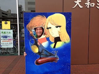 ↑こちらがメインの大和ミュージアム。左の鉄の鯨が見えてるときから 上のイラストが見えてたんだけど、相棒は、【ゆきさん】のことを【メーテル】って 言い張ってた(−−; そしてテンションあがっている相棒がかわいいですwこの辺で雲行き怪しかったんだよね。 実はこのミュージアムの中にいる間に滝のような雨が降ってきました! 建物の中で助かったよ。本当に |