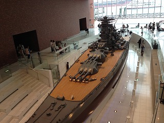 | ↑たぶんヤマトミュージアムのメインと思われるところ?戦艦大和のコックピットを再現したもの。 本当によくできていて、こんな感じだったんだろうなぁと思いました。 でもさ、思うんだけど、戦艦大和の歴史って、戦争の歴史なんだよね。戦時中の話なんかをいっぱい放映していて、なんか胸が詰まった。 スタジオジブリのほたるの墓でもあったんだけど、当時の日本人からしたら、この戦艦大和は本当に最後の希望だったんだろうなぁって、思う。 それだけすごい技術だったんだと思うんだよね。実際、いろいろ見たんだけど、何でこの技術があって、戦争負けたのかわかんなかった。 本当にすごい技術だったんだということはわかったよ。 ↓入って直ぐのところに大和のかなり大きな模型が飾ってあったよ。人の大きさで判断してみてね。 これを見れただけでもいや、よかった。 たださ、これ、見てもなんというか、本当に戦争の歴史だけなんだよね。悲しさが先に来た。 後は小さい模型もたくさん出てたんだけど、本当にプラモデル!すごい精巧なのね。別の意味で見てる分には綺麗だったよ。 うん、なんというか、模型を見る分にはいいところだったんだけど、第**艦隊**係り**兵とかさ、写真がたくさん飾ってあるのね。 判ってはいるんだけどさ、もうなんか、ほんとうにもうさ、辛かった。 |