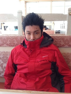 | さて、1本滑り終わって、ふもとのレストラン「バンフ」で休憩です。 昨夜家でカロリーメイトを食べて以来食べていないので、おなかもすきました。 で、早めの休憩かねてお昼ごはんです。 上は多少寝不足の相棒です。彼の新しいウェアーは 赤です!以前と変わらないけどね。 |
