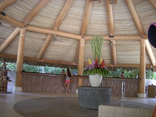 | さて、そんなわけで早速待ち合わせの ロビーに行くのですが、コテージ泊のため、 ロビーが遠いwまあそれはそれです。 大きな木が印象的です。 |