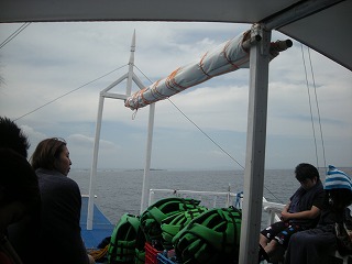 で。現地到着。さっそく屋形舟的なものに みんなで乗り込み。結構揺れる |