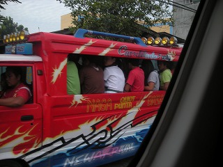 | 夜が明けてきて、みんなやっと回収終わって (最終回収は7時00分くらいだった) いよいよ移動。 今日は普通に考えたらフィリピンの平日。 みんな働いてる。↓通勤中の皆さん。 そんなのをしり目に遊びに行きます(^^; 露天販売がたくさんありました。 おりの中で売っています。 セキュリティー面の問題らしいが 結構見た目怖い(^^; |