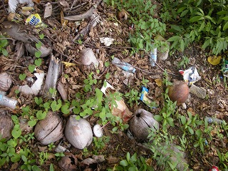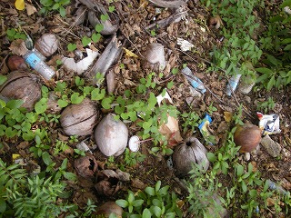 そしてごはん終わって、店の前。 ヤシの実とゴミと混ぜ混ぜで捨ててあるという。 むしろ、ヤシが自然に落ちてきていて、 ゴミが散らかってるって感じだった。 やし、、、もったいないなぁ 飲みたかったなぁw |