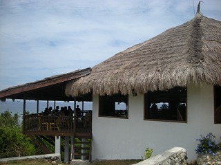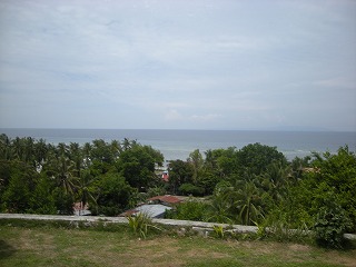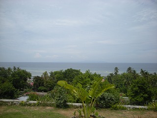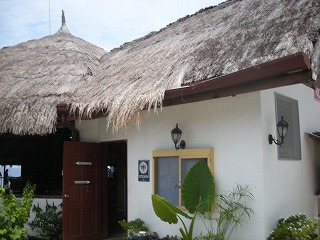 | ↑は店の前からの海と店の表 結構きれいでしょ?↑真ん中の テラスのようになっているところわかる? ここでごはん食べたんだ。 いいところだった。 |