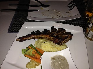 で、あとはメインのお肉なんだけど、スペアリブ そろそろおなかいっぱい。多い。 これを2人で食べたんだけど、結構あるよね。 外国のご飯はたくさん入っているから 毎回気を付けております。 |