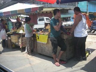 車の中から:カルボンマーケットの見学です。 降りてみたかったんだけど、著しく、ガイドブックにもガイドさんにも相棒にもとめられたので 車の中からの見学で満足することに。 相当すりが多いのと、治安が保証できないそうだ。 まぁ。。。。。見てたら相当活気あるんだけどね。活気あるからこそ治安悪いんだろうな。 ベトナムのベンタイ市場を外にして治安悪くした感じ。 ひたすらいろんな物売ってた。 |