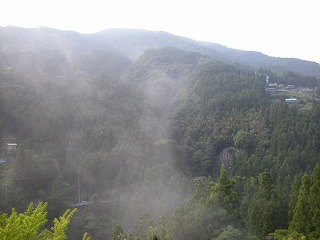 宿前に到着!只今の時刻 17:00前。 ってことで、今日はかづら橋をあきらめて、 宿でゆっくりすることに。 ここのあたりは戦に負けた平家の皆さんが 住んでいた辺りらしく、本気でなんか出そう 。。。。。でした。ちょっと霧が晴れないところ とか、なんとなくう〜〜〜ん。。。。 科学で証明できないものは苦手です。 |