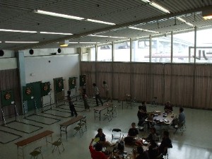 | 大会も進み、大分ダーツ台もあいてきてたので1人1台の台で一斉に投げます。 上から見てた人が「異様な光景だった・・・」といってました(W で、結局勝者は写真一番右端の「はらちゃん」でした(^-^) 本番であれくらいできていれば勝てたのにね(^^; みんな同じです。 |