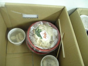<そしてお昼ご飯のカツどん。 おいしいんだけど、写真取るの忘れたので 至急中のものを写真撮影 お弁当5種類くらいあって、チョイスできました。 HDOよりもいいじゃないか。。。。 お味はおいしかったよ。でも朝ごはんガッツリ 食べ過ぎてて、ほとんど食べれなかった。。。 |