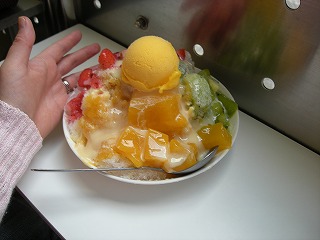 で、11時少し前 お待ちかねのアイスモンスターです 行って見たら開店直後だからか まだ人はとても少なかったです。 で、マンゴーカキ氷を頼んで みたんだけど、やっぱりまだ 扱ってませんでした(T0T 楽しみにしていた相棒が かわいそうです^^; また台湾に来ような。。。 |