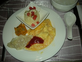 左上は宿泊の記念にとおはしをいただきました。 中は黒塗りの普通のおはしなんだけど、はこが かわいいので、そのままおいてあります。 ←朝ごはんです。バイキング形式になってます。 かなり普通の朝ごはんになります。おかゆの ほかに、パン食もあったけど、これといって 目新しいものも無く。。。です。 コーヒーが普通の濃さででてくるのが うれしかったかな。台湾のコーヒーって、熱い国 だから結構薄いんだよね^^; |
