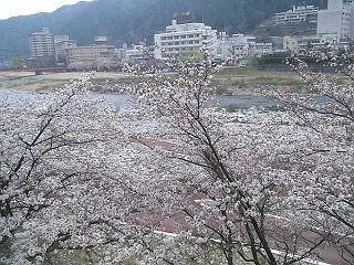 広間から見える景色もまた奇麗で、桜が目の前に咲いてました。