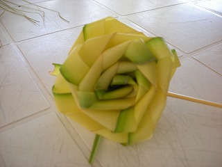 そして、右端のお花、きれいです。 葉っぱで作ってあってね。しっかり重いんだけど、かわいかった。。。。うれしかったです〜^^ |