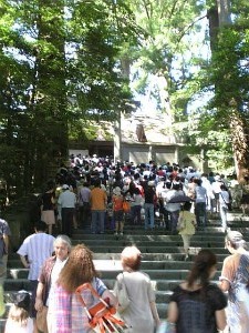 (T-T)やっぱり体調悪かった だんだん目の前が暗く なってきて気持ち悪い。 そんなわけで←の写真にある とおりお参りするだけ ですごい人なので、 今回は木陰で休んでました。 後でわかったんだけど、 「熱中症」の手前だったみたい この日、全国的に熱中症で たくさん亡くなってました。 すごい暑さです。 |