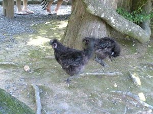 手持ちのお茶を飲んで、すっきりしてきて 気持ち悪いの直ったから、お庭を散策。 お伊勢さんに来たのに内宮おまいりできず。 ちょっとへこみますが、ま〜しょうがない。 お守りだけはGetして後にしました。 でね、何でかわからないんだけど 鶏がたくさんいたの。いろいろたくさん。 えらい鶏なんだろうか?とか少し思いました。 |