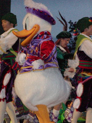 右手を上げて あっぱっぱ~~♪ 左手上げてあっぱっぱ~♪ ふっく・ふっく・1・2・1・2♪♪♪・・・ すみません、とちくるっておりますが、夜のメインイベントの1つで ディズニー・リズム・オブ・ワールド???とか言うイベントでした! これがまためっちゃ面白い(^^)4つのグループに分かれてて、 なんと私は「ドナルドチーム(*^-^*)」 幸せでしたぁ(^^)ドナルドのあのでかいおしりを振り回しながら 踊る姿は本当にかわいかったです! |