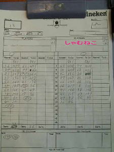 はい!今回のシングルス戦の スコアです!初めて写真取りました^^ しゃむねこの相手はとても上手で 1回しかダブルを狙わせて もらえなかったよ〜(T0T) 次こそは!頑張ります! ん?ダブルスですか? 聴かないでください・・・・。 |