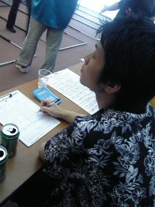 チームN社です(w わかる人だけわかってください。 上の写真がダブルス戦のチーム。 右<ドラえもん工務店さん+たねたねさん> 左>せれさぽ1号さん+しゃむねこ いずれも初戦負けです(T_T) |