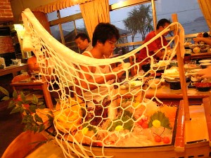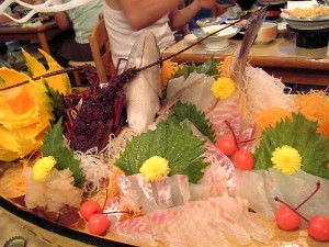 そして!期待の夕食! どうよ?!この船盛り! これで1泊12000円だよ?!イセエビ+鯛だよ? マジおいしいし、鯛って結構身が硬いんだね。 そして甘い。ものすっごくおいしかった〜〜〜! はぁ、幸せ(*^-^*)この船盛り見たときに すごいテンション上がったよ〜 |