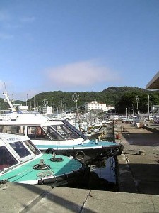 お世話になったペンションの前の写真と鳥羽に向かい定期連絡船乗り場。 海がきれいで、魚とかいっぱいいました。しっかし、本当に晴天だよね! これで、この離れ小島は終わります。 |
