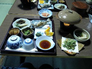 上がお夕食。豪華だね(^-^)♪ お魚の焼いたやつがおいしいです〜